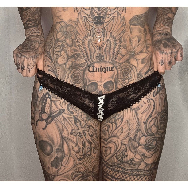Dann schnapp Dir jetzt meinen schwarzen Slip mit weißer Schnürung.